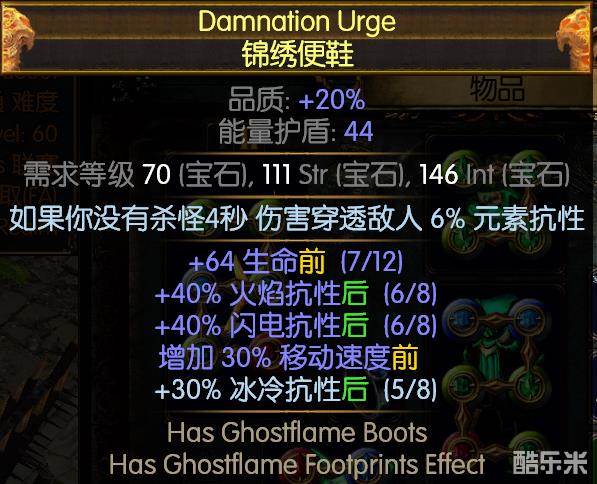 鞋子:高血+高抗+高跑(闪避底子最佳,30%跑速我觉得是必备的)