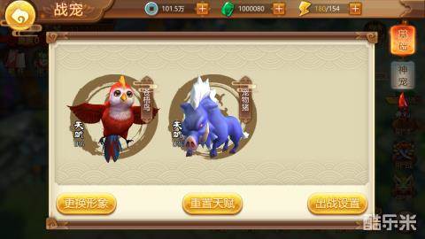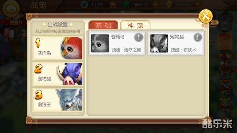 宠物可在出战设置中配置出战,出战效果除了被动属性提升外,还可以释放宠物技能。全部解锁后阵容有3个宠物栏位,配阵完成后,战斗中玩家点击释放宠物技能,每个宠物技能释放前有10s的CD(包括开场CD),宠物技能根据宠物出站设置排序按顺序释放。所以如果搭配且更合理的使用宠物技能,也是战斗胜利的关键点之一。