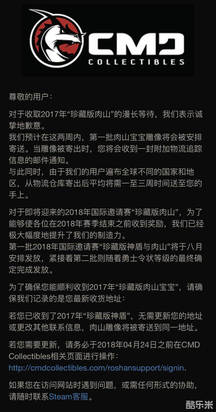 DOTA2漫长等待 TI7珍藏版肉山终于寄出!