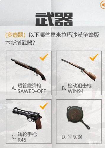 1、(多选题)以下哪些是米拉玛沙漠争锋版本新增武器?