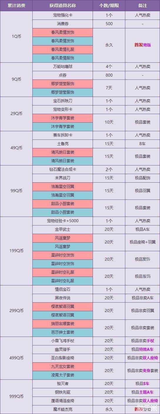 QQ飞车4月消费送礼 1Q币领绝版特色服饰