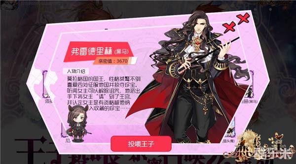 与上一位仅有90亲密值之差的黑马国王弗雷德里赫以3670的最终亲密值数位居第四。这个留着海藻般长发的俊美青年衣着华丽精致,举手投足之间可见身份的高贵,微挑的眼角让他看起来有些桀骜不驯,喜欢收集珍宝这种“收集控”的潜质也是为这个角色增添了一丝生活气息,总之,是个霸道又可爱的人~