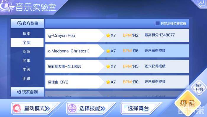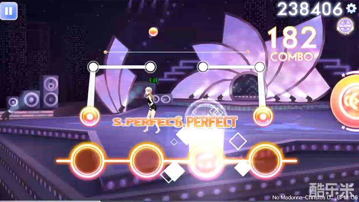《No Madonna》这首歌首次挑战推荐得分提高,当然这首歌非常经典,也不乏很多听过这首歌的听众。在熟悉歌曲旋律的前提下,玩家可以选择极限增强、连击加成两个技能,可以保证S.PERFECT音符节奏选择极限增强,可以保证更多的COMBO连击就选连击加成。