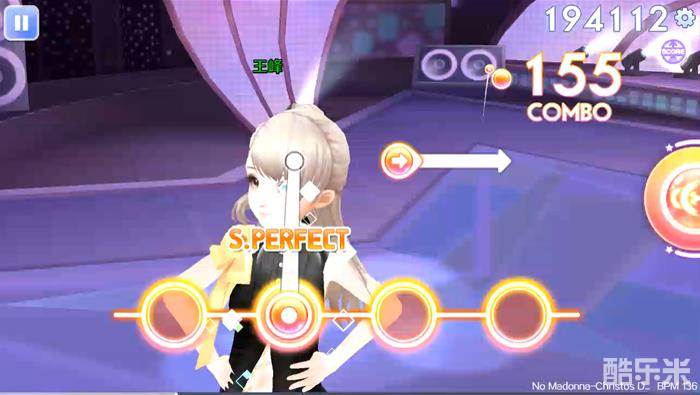 《No Madonna》歌曲的第一音就非常震撼,开头部分就会出现长按滑动音符,并且音符横滑点还比较多,跟着伴奏的节奏可以提高横滑的S.PERFECT音符节奏。另外歌曲开头就可以开启爆气模式,如果开头不使用爆气,就留到Show Time之后在使用,尽量不要在歌曲按键时候去按爆气,非常容易出现MISS情况发生。