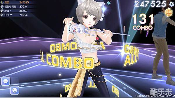 排位赛和其他玩法相同,都是采用节奏音符评分方式来进行积分,评分高低依次分别为S.PERFECT、PERFECT、COOL、GREAT、MISS。玩家连续击中音符可以获得COMBO连击效果,这样分数加成也会更高。当出现MISS音符后则分数不会增加,并且会中断当前的COMBO连击效果。另外玩家还可以在开始前,在自己的技能栏中选择一个适合自己的技能,用来提升自己的比分。另外排位赛中还有一个爆气操作,当音符密集时开启爆气,可以延长爆气时间获得更高的分数。
