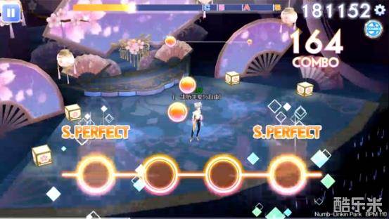 最后Numb歌曲结尾的部分依然是最难的部分,是导致玩家无法拿下ALL COMBO的最大敌人。这里会同时出现大量的交汇音符,并且这些音符的十分密集,音符敲击的反应时间非常短,需要玩家眼疾手快。这里的小技巧是长按音符结束不用着急松手,长按音符不松手不会出现MISS,到下个需要敲击音符的时候直接去按,可以降低一些MISS的几率。