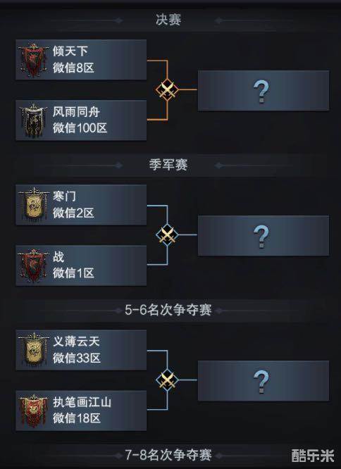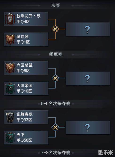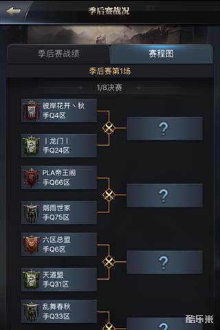 本次季后赛将会分为手Q区与微信区两大赛区,共计32个联盟参与。在经过了残酷又激烈的重重争夺后,手Q区进入总决赛的两支联盟分别是手Q4区的彼岸花开丶秋与手Q1区的歃血盟,微信区进入微信8区的两支联盟则是倾天下与微信100区风雨同舟。两个赛区均在4月14日晚上21:00的总决赛决出最强!其他主公亦可通过观战及竞猜,参与到精英联盟间的激烈角逐中去,体验前所未有的战斗体验!