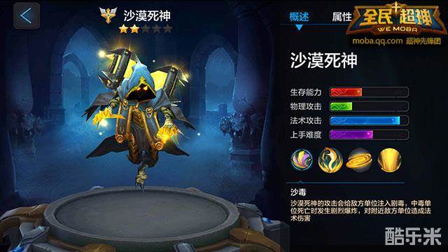 沙漠死神是该组合的法术控制英雄,他和极光女神一样,也拥有击飞敌方的技能,并且他的减速和持续伤害相对极光女神更给力不需要沙漠死神持续施法,即可对敌释放范围性群攻技能。