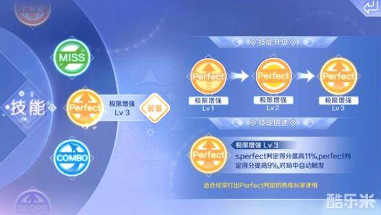 明明就是一首玩家非常熟悉的歌曲,敲出S.Perfect音符的几率也会大大提升,另外密集的音符也让这首歌非常适合用来拿高分,所以技能选择上推荐使用极限增强。如果觉得这首歌比较难的话,则可以选择得分提高,这个技能不需要玩家保持音符连击。