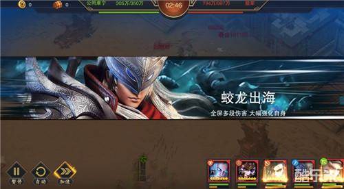 赵云的核心技能为蛟龙出海,可以对全屏目标刺杀4次,每次造成高额度的远程伤害,并且提高伤害加成和减伤属性,持续12秒。赵云的必杀技堪称整个游戏的最强进攻技能,爆发高、全屏AOE,再加上无与伦比的增益BUFF,使得一个人就能颠覆战场的整个格局,但凭进攻就能打垮敌人,是暴力党的首选武将。