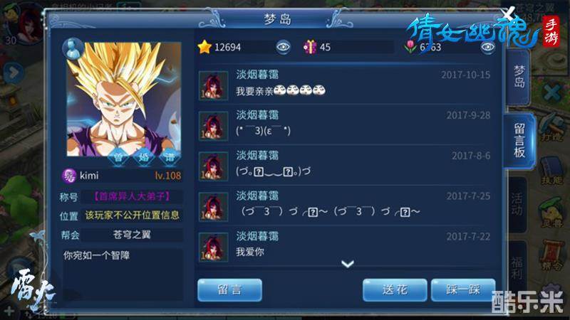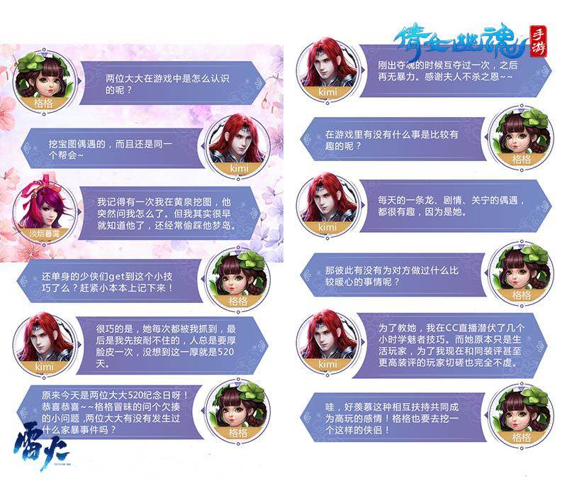 作为倩女手游三界人人羡慕的姻缘人气第一的侠侣,kimi和淡烟暮霭的相识更像是命中注定的缘分。二人虽然身处同一个帮会,但真正促使他们在一起居然是因为在黄泉挖宝时的偶遇,这究竟是怎么一回事呢?原来淡烟暮霭之前就会去偷踩kimi的梦岛,而每次都会kimi抓到。而借助这次偶遇,kimi主动示好,之后也两人便顺理成章的在一起了。
