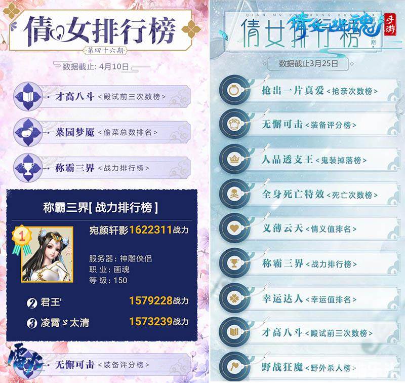 倩女手游膜拜榜46期,挖宝成就三界姻缘人气第一