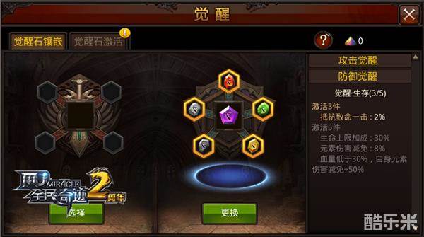如果说现如今的装备提升系统,都是对装备本身进行操作,那么即将到来的《全民奇迹MU》3.0大版本觉醒系统,则是在装备之外对装备进行提升。在3.0大版本觉醒系统的觉醒石激活页签中,玩家们将见识到攻击觉醒套装与防御觉醒套装两大类别,分别对应着武器、项链、左戒指、右戒指4个装备位,以及头盔、护甲、护手、护腿、鞋子5个装备位。与此同时,每个觉醒部位都对应着不同的觉醒石,集齐觉醒石即可在界面激活此部位觉醒石,从而获得觉醒石基础属性加成。