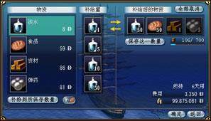 1.出航最重要的就是补给水跟食物,若是航行到较远的港口就需要较多的数量。