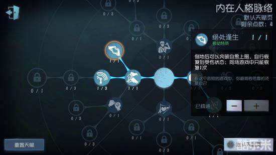 求生者天赋有四个方向,分别是勇敢,执着,冷静和友善。