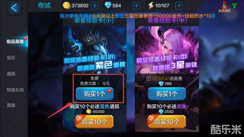 商城每日都有免费金币抽装备的地方,请看下图,每天免费五次,每次抽完后间隔时间是5分41秒!这里最高会爆紫装,紫装啊 !!帮你后期升级英雄装备,省了多少事你造吗?!听我的,一定要去抽!!不抽白不抽!
