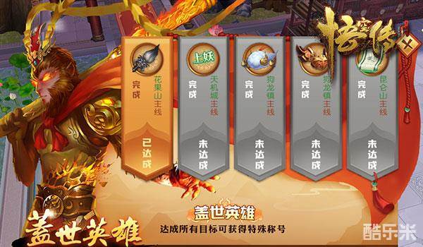 历经重重艰难万险,当然还有特别的荣誉:盖世英雄!作为特殊的称号,代表的自然是无尚的荣誉。想要获得“盖世英雄”特殊称号,就必须完成其中的全部主线,直到昆仑山主线完成时,你就是真正的盖世英雄。