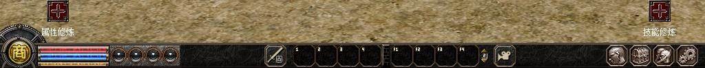 1、主菜单: 生命条/精力条/耐力条/快捷栏及打开各个操作窗口的按钮;