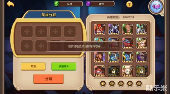 5星的英雄也能被分解(但是你舍得么),所得到的奖励是最多的。如果英雄上面有个锁的标志,代表英雄正在被使用中(如竞技场),需要解除使用状态才能被分解。6星的英雄目前不能被分解。