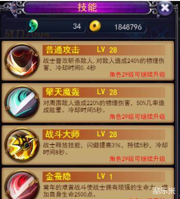可以看到这边的技能在40级的时候都只有一个主动技能,所以技能就能加满就全加满吧,游戏的金币很充足。足够全部加满。