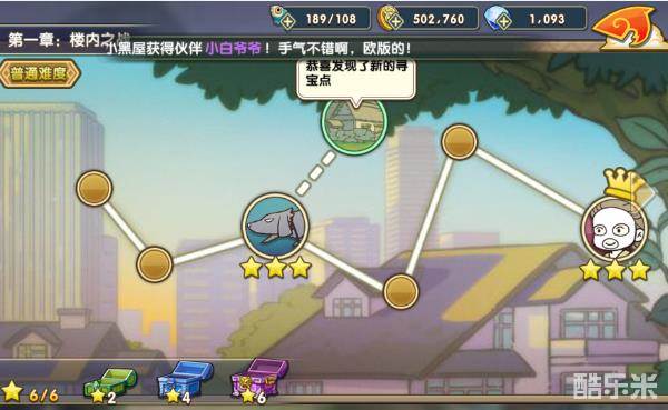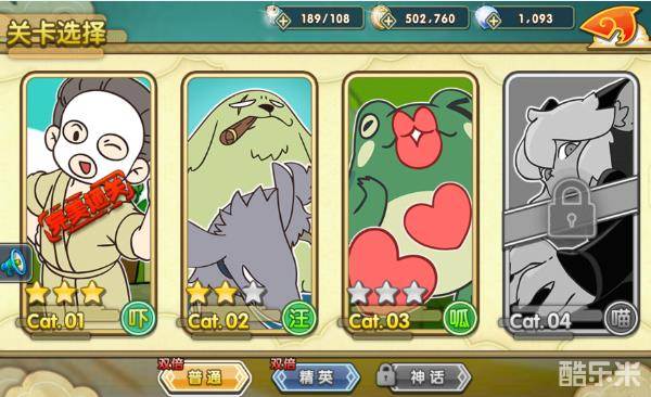 每个关卡中均有不同的妖怪,击败妖怪即可通关,己方无小伙伴阵亡即可三星最高通过关卡。每章都有三个不同价值的宝箱,每章所有关卡均三星通过后即可获取所有宝箱奖励。宝箱奖励产出金喵币、人物碎片、唤灵石及其它。