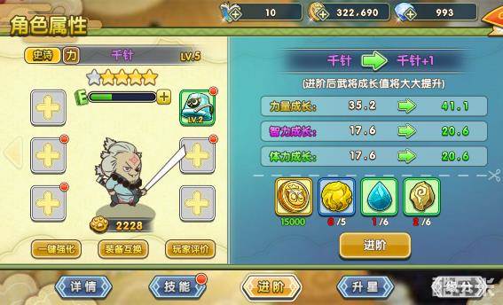进阶可以提升小伙伴的品级,增加属性和解锁更多的技能。
