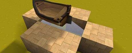 4.然后用桶先把水给装走,再把方块撸掉,这样一来船就会孤零零地在地上了;