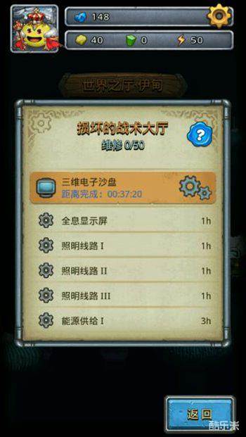 5.每项修复后将获得一定资源,获得资源类别有钻石,金罐,金币,土罐,世界树果实,迷之雕像,世界树经验,电池,电力,铀矿,瓦斯,加速器以及下阶修复解锁装置。