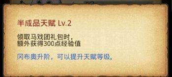 半成品天赋 :领取马戏团礼包时,额外获得300点经验值。