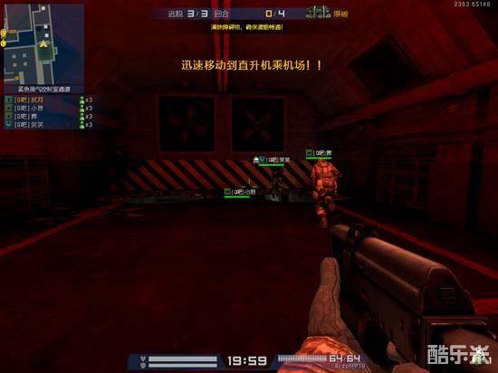 第四关,看到中间有个火箭筒的箱子了吧,1个人拿火箭筒,然后打开右边或者左边的门。看大家的习惯了。然后开门的人和拿火箭筒的人配合好门一开就发射,把这里的逃犯都吸引到这个门来,然后一个跑的快的队友从另外个逃犯少的门速度冲进去爬上最里面的那个台子也就是中间的爬上去一直挑衅那些逃犯(挑衅逃犯的时候一定要准星瞄准那个去飞机场的门的方向否则逃犯会爬上来的)。