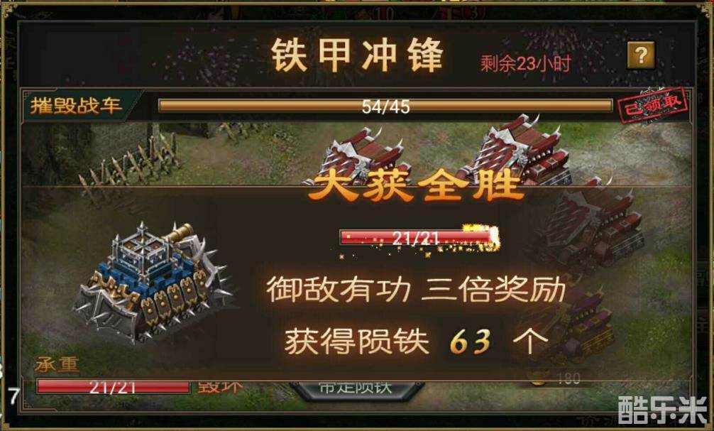 1.每次攻击结束后承重值如未超过上限可继续攻击,战车承重值达到20点时可额外获得陨铁;