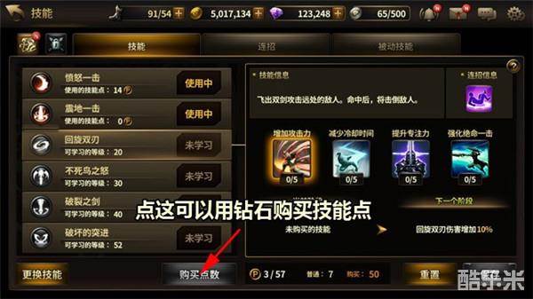 所有的技能都可以通过技能点来进行强化,技能点没升级1获得1个技能点,技能点也可通过钻石购买获得。