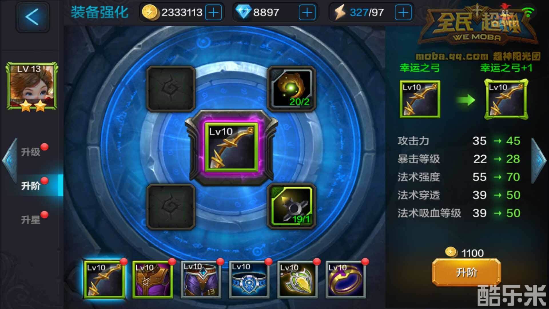 升阶主要用到装备碎片,碎片主要产自普通闯关,获取也是相当的容易,竞技、挑战商店也可以获得各类罕见的装备碎片。PS:优先升阶武器和指环,对英雄增益效果最好。