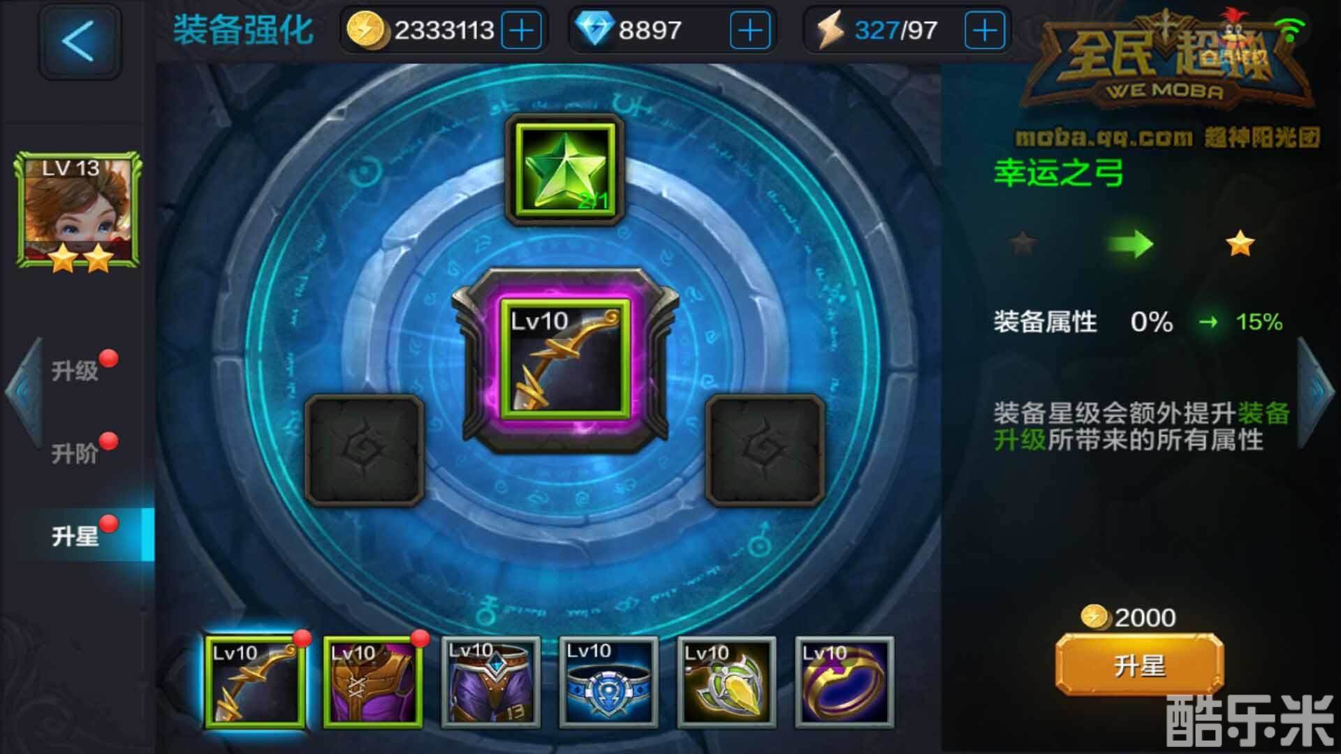 升星主要用到的是升星石,升星石获取比较困难,主要从挑战、竞技商店、每日任务、商城购买装备经验卡可以获得,所以升星石一定要用在刀刃上,陪厉害的英雄。PS:优先升星武器和指环,对英雄增益效果最好。