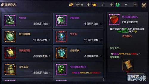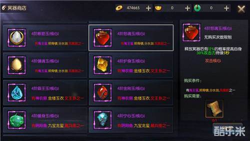 说到“核心”,那就是另外一个新世界了,核心也分为攻击、防御、辅助三种,分别只能镶嵌在同一类型的冥器上。不同的核心可以触发不同的特殊效果,而且能增加超多的战斗力!超牛x有木有,作用简直相当等于一件小冥器!就是触发条件有点看脸(非酋躲一边哭去了呜呜呜)。当然核心主要也是在冥器商店通过冥器图鉴兑换,什么?你问我冥器图鉴怎么获取?俺要是再说是九层妖塔……看官们会不会打俺!