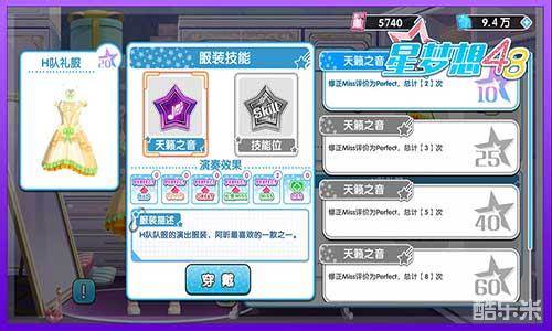 《星梦想48》每件华服都有有技能,点击服装,查看相应的技能效果。高级套装在演出时,附带判定修正效果,对打出高分非常有帮助。另外还有回复体力等其他技能,根据想要的演出效果选择和搭配服装,可以事半功倍哦。