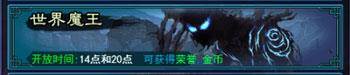 没错,在至尊大主宰也是有着讨伐世界BOSS活动,那就是【世界魔王】了,超高的血量对于玩家来说将是一个巨大的挑战,不过成功将世界魔王击倒的话,所有参与的玩家都会获得奖励,而输出伤害较高的前几名更是有着超回报哦,玩家们有没有很心动呢?那就来看看吧。