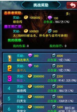 成功击杀世界魔王后可以获得大量的奖励,是不是很诱人呢。