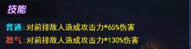 怒气技能:对前排敌人造成攻击力x130%的伤害。