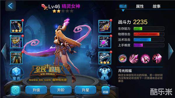月光祝福(被动):精灵女神受到月光的祝福,若一定时间内没有发动攻击则下一次攻击必定暴击。据测试10秒不a的话就会有一个固定暴击,(大家可以测试一下哈)配合月光之箭会有意想不到的效果哦!