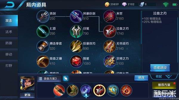 【泣血之刃】:泣血之刃物攻的加成和吸血效果一方面是提升刘备的伤害输出,加快刷野速度的同时可以减少来自野怪的消耗,在团战时,先手开团的刘备在吸收完足够的伤害之后,撤出团战可以快速的回复血量,从而再次投入到团战中进行最后的收割。另一方面,物攻的加成以及吸血效果也进一步的提升了三技能的护盾效果,可以使得刘备在输出伤害时不断的吸血回复自身血量,并提升刘备的护盾值,在团战中打出爆炸输出并保障自己的生存能力。