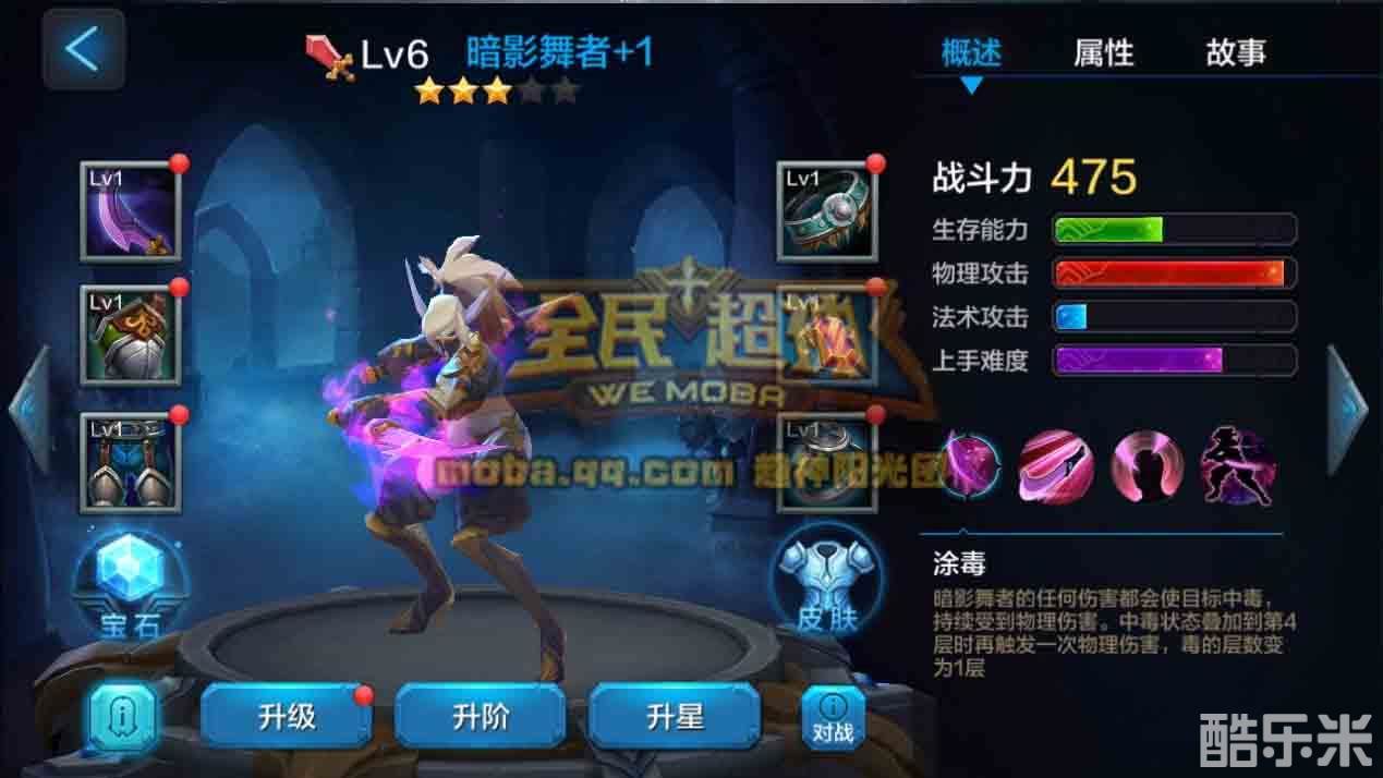 首先看下天舞的技能,被动技能或攻击会给对方施加一层毒,4层后可以有一个爆发伤害;1技能为单体攻击技能,可以弹射;2技能可以减速敌方英雄,如果背后释放则可晕眩且有额外伤害;3技能可以瞬间跳到英雄身后,能够释放三次。通过技能我们可以看出因为被动的存在,天舞在对方英雄身上叠加4层被动后可以有一个很高的爆发。