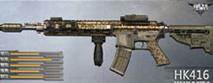 HK416由黑克勒-科赫以HKG36的气动系统在M4卡宾枪的设计上重新改造而成,现已成为完整的突击步枪推出。 装备率:3% 出场率:2%