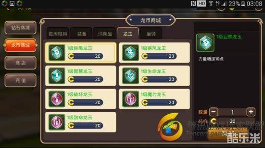 龙玉可以升级,20--30级装备最高4级,30-40级装备最高6级,龙之远征每天可以产出龙玉,龙币商城可直接购买龙玉20龙币一个一级龙玉!