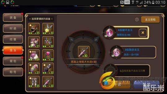 龙之谷玩家等级达到30级开启龙之远征,龙之远征将掉落龙玉,玩家可以在有镶嵌孔的装备上镶嵌龙玉,俗称打宝石!