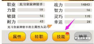游戏的主页中,我们点击【角色】,可以看到几个基本的选项,那么这次我们要说的就是【技能】了,来看看细节吧。