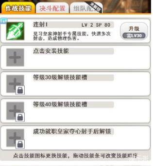 技能分为刷图的【作战技能】以及在PK时用的【决斗配置】,技能槽需要玩家提升等级来解锁,技能的升级对于等级要求也是比较高的,我们来看看技能解锁吧。