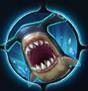 恶鲨啃噬:抓住一个敌方英雄,用手中的恶鲨疯狂啃噬此英雄,使其3秒内失去行动能力,每0.5秒对此英雄造成60(满级100)(+11%法术加成)法术伤害。