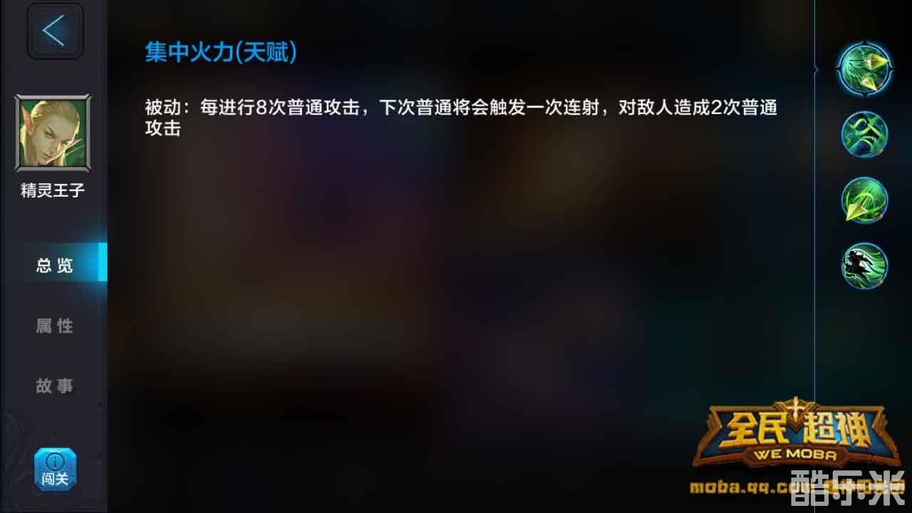 集中火力:精灵王子每进行几次普攻攻击将会触发一次连射效果(被动技能)。