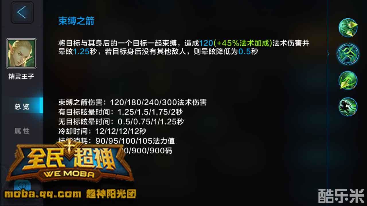 技能分析:一个硬控技能,在3V3里地图比较小,敌方3人很容易聚到一起,而精灵王子的这个技能,可以晕住一条线上的两个敌人,可单可群相当完美的技能,而且伤害也是灰常的高。